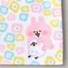 お花柄の中で、うさぎとピスケがまったり座った柄の巾着と、