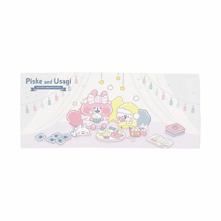 ピスケとうさぎのゆるっとかわいいパジャマパーティー柄ハイブリッドフェイスタオル です。