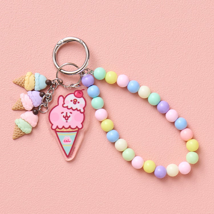 予約商品について詳しくはこちらをご確認ください。カラフルなビーズとアイスクリームのモチーフが目を引くキーホルダーです。